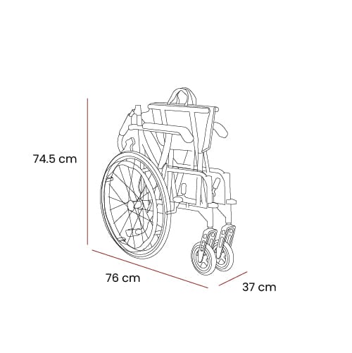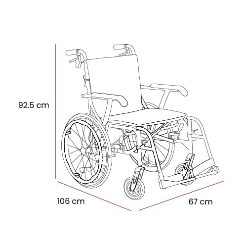 The Magnelite Self-Propelled Wheelchair is a lightweight and highly functional mobility aid designed for both user independence and caregiver convenience. Weighing just 6.5 kg, it features a sturdy frame that supports a maximum user weight of 19 stone. With a seat width of 44.5 cm and large 50.8 cm rear wheels, it offers a comfortable and stable ride. The wheelchair is equipped with lockable attendant brakes for added safety, while the folding backrest and fully disassemblable structure ensure effortless transport and storage.