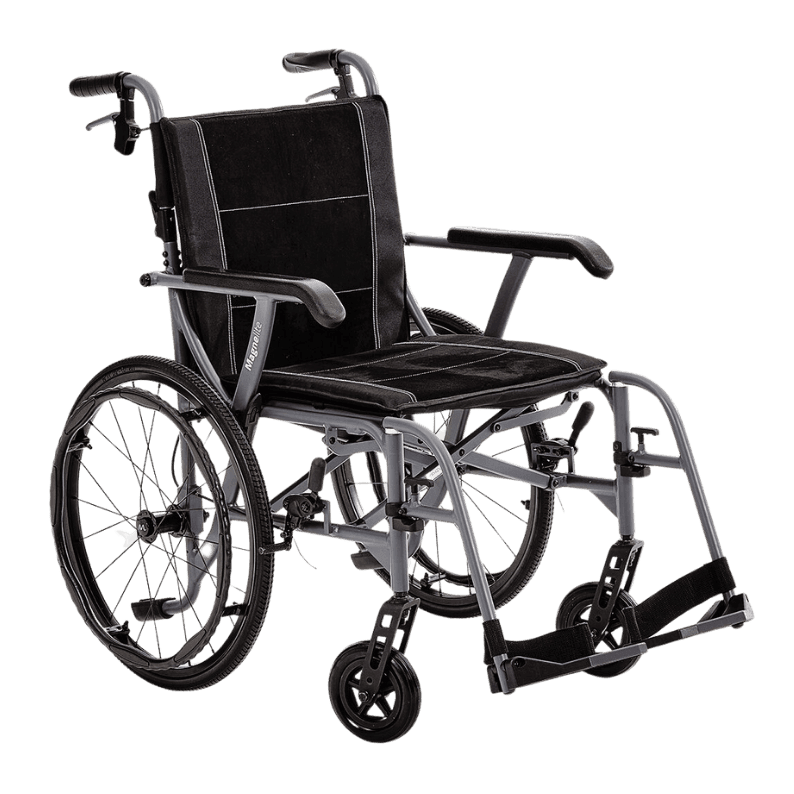 Designed for practicality, the Magnelite includes flip-up armrests to facilitate easy side transfers, making it ideal for users requiring frequent movement assistance. Its durable yet lightweight construction makes it an excellent choice for everyday use, whether indoors or outdoors.